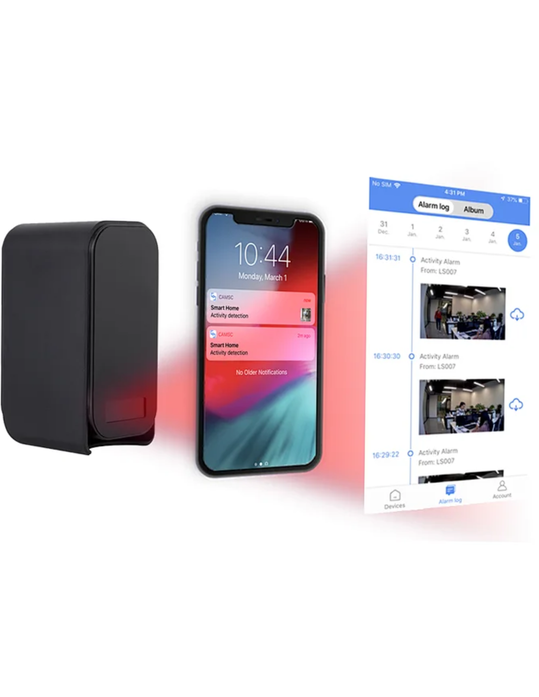 - 6 heures en détection permanente 4 h avec IR et jusqu'à 6 mois sans présence