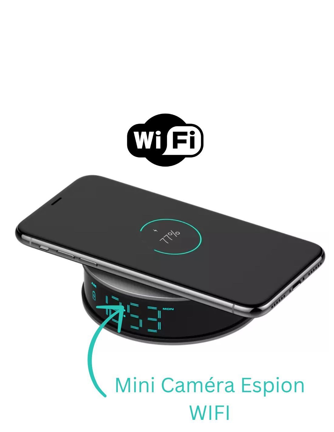 Caméra espion Wifi dans une horloge de bureau avec fonction chargeur à induction 120°