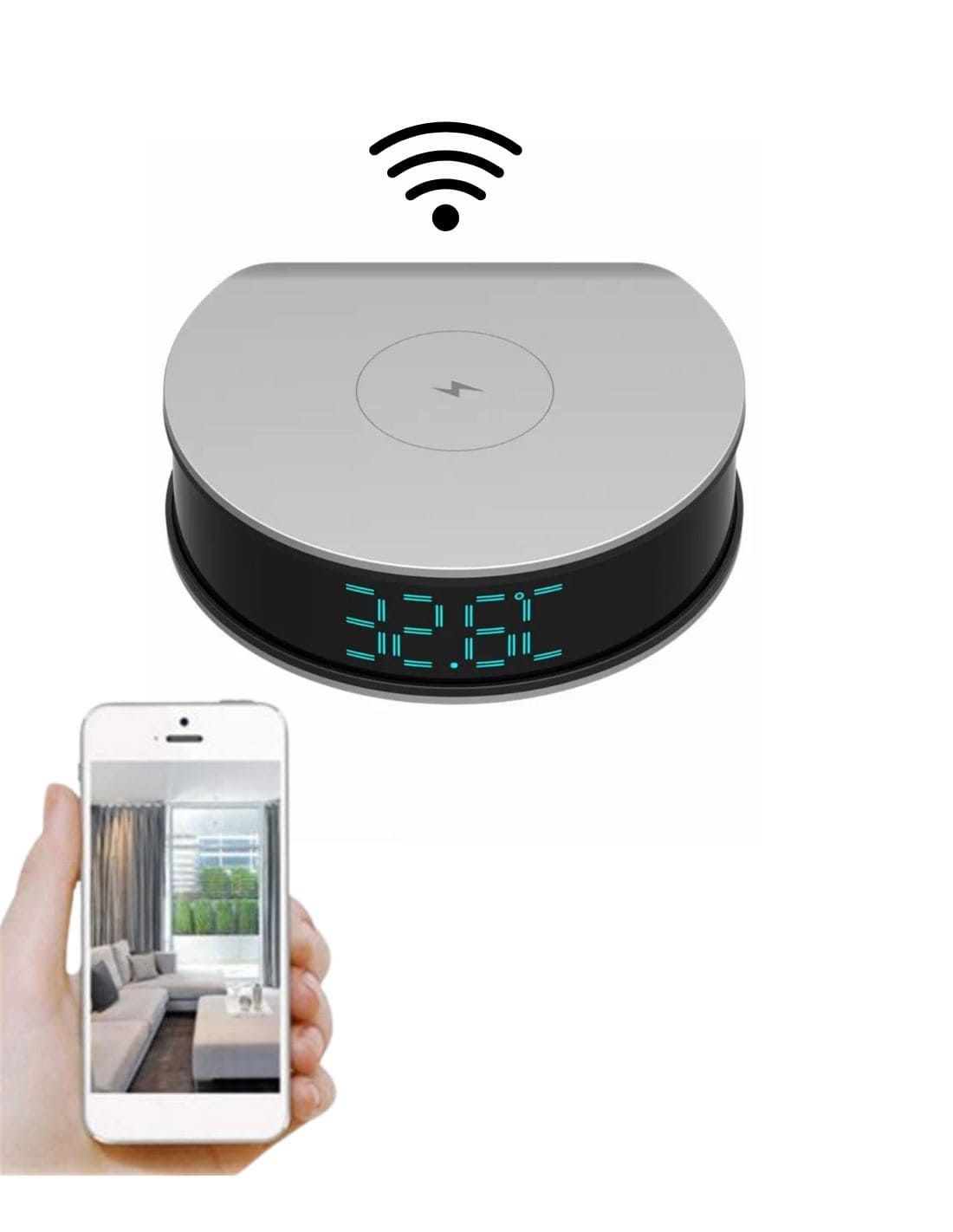 Réveil et chargeur sans fils avec caméra intégrée