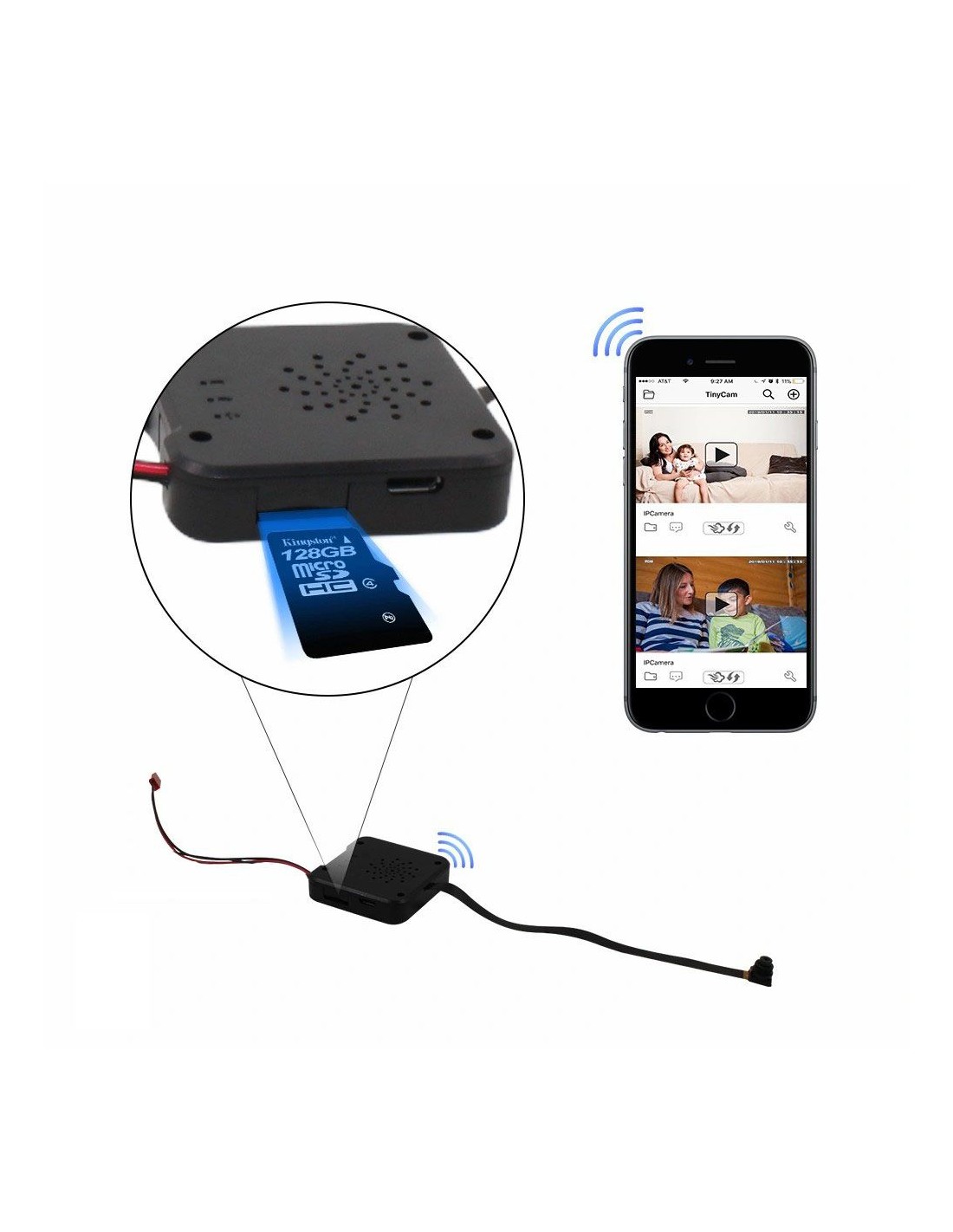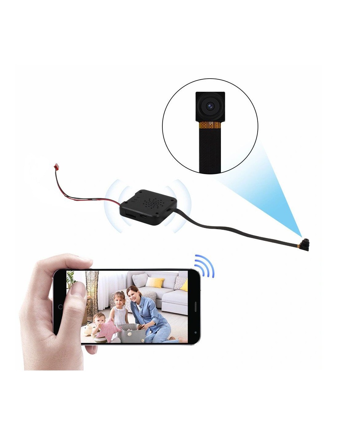 Ce module caméra est en capacité de se connecter au réseau wifi d'une box internet ou à un modem 4G afin de surveiller à distance ce qu'il se passe. Simple, grâce à une application gratuite à télécharger sur votre smartphone, visionner les images de la caméra espion quand vous le souhaitez avec une simple connexion wifi ou 4G.
