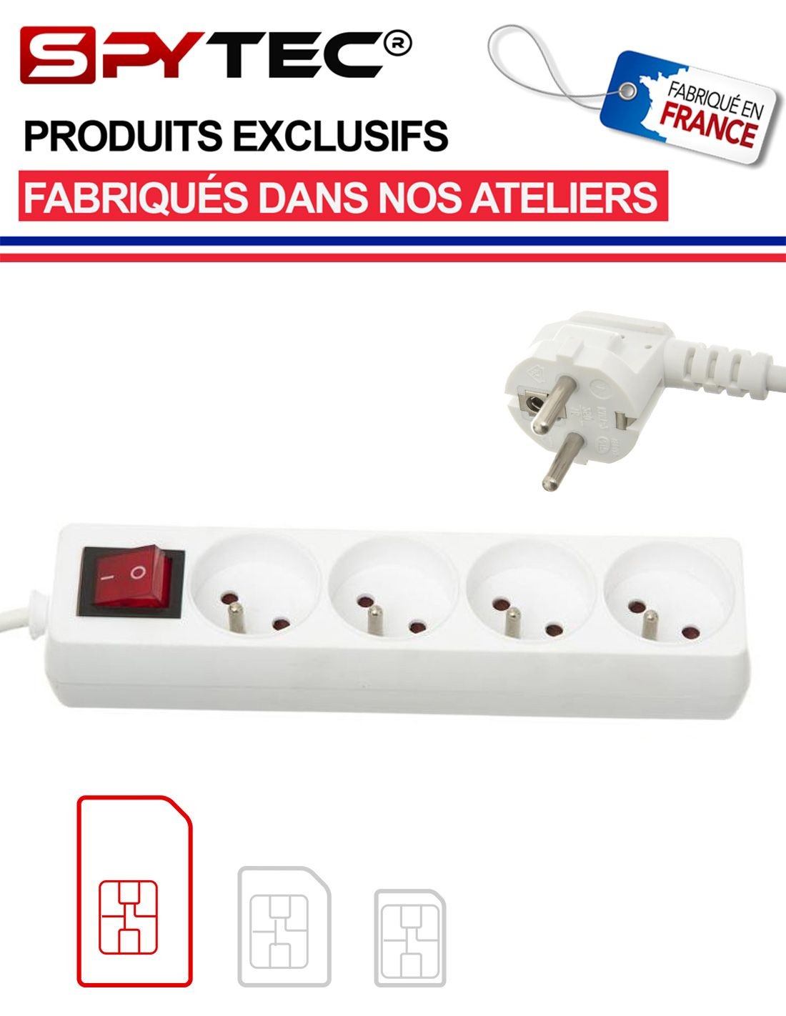 Cette multiprise avec micro espion GSM (avec 4 prises d'alimentation) est fabriquée en France dans notre atelier et bénéficie ainsi de l'expertise de nos techniciens.