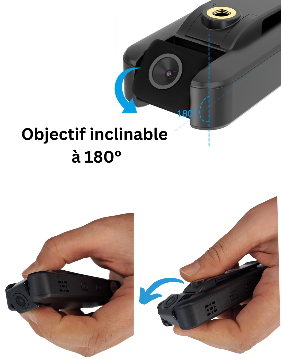 L'avantage de cette caméra est que l'objectif est inclinable à 180° de haut en bas.