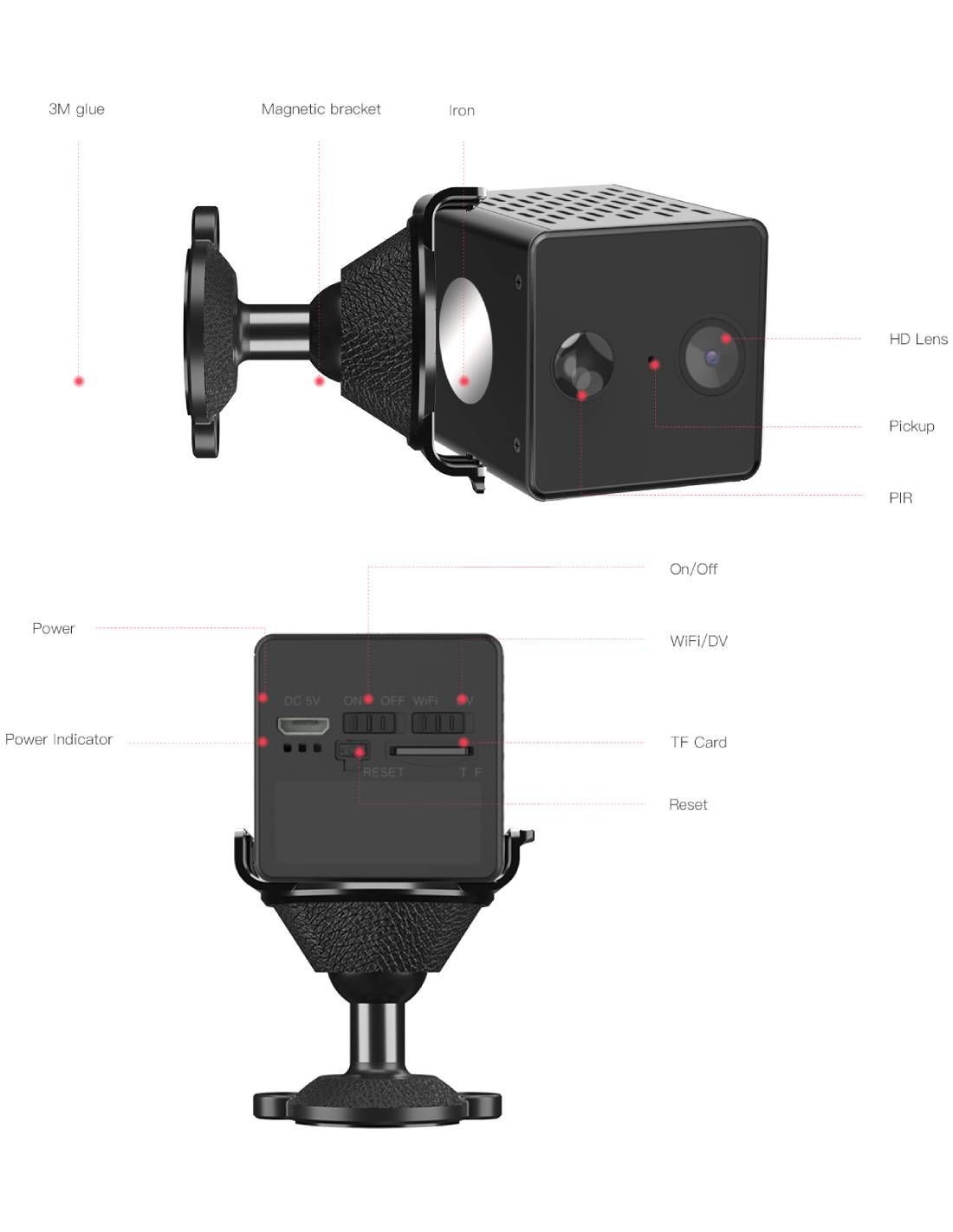 L'avantage de cette petite camera espion est son capteur PIR : il détecte uniquement la chaleur humaine, évitant les fausses alertes et permettant une meilleure autonomie qu’une détection classique de mouvement. Résultat : enregistrement précis et économie de batterie optimale.