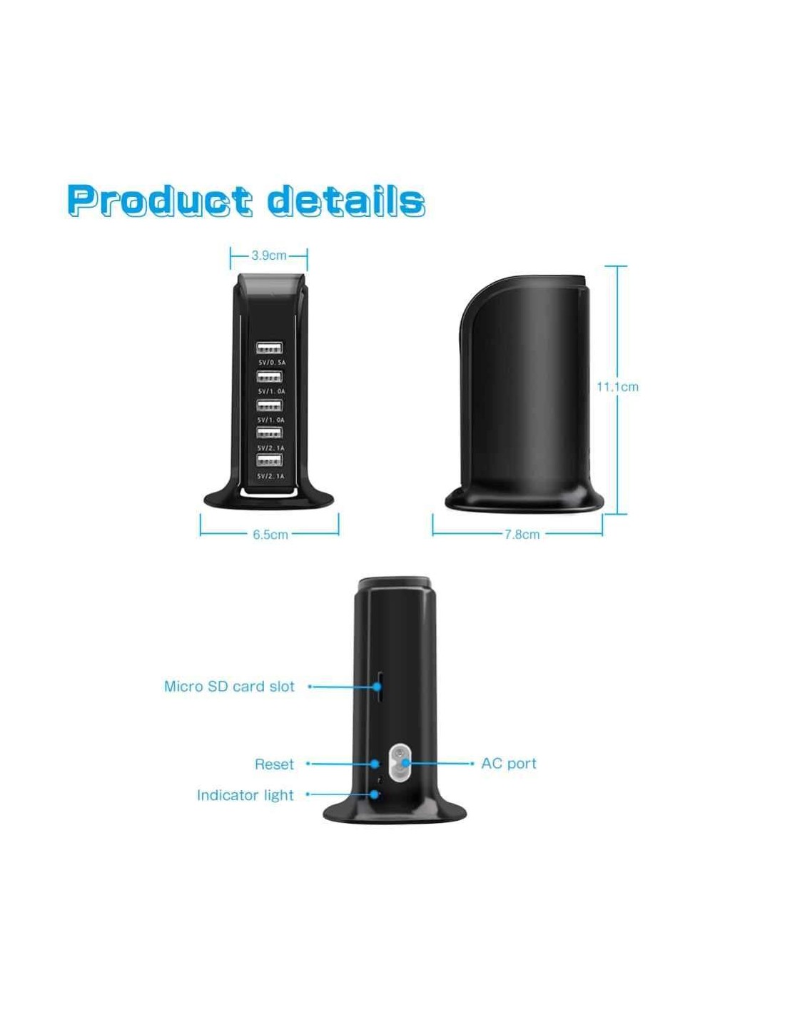 Cette station de charge USB renferme une redoutable caméra espion Wi-Fi HD 720P. Grâce à une application disponible sur Smartphone, vous aurez la possibilité de paramétrer votre caméra afin de réaliser des enregistrements vidéos, visionner la caméra en direct (si connexion Wi-Fi) et d'avoir accès à de nombreux réglages.